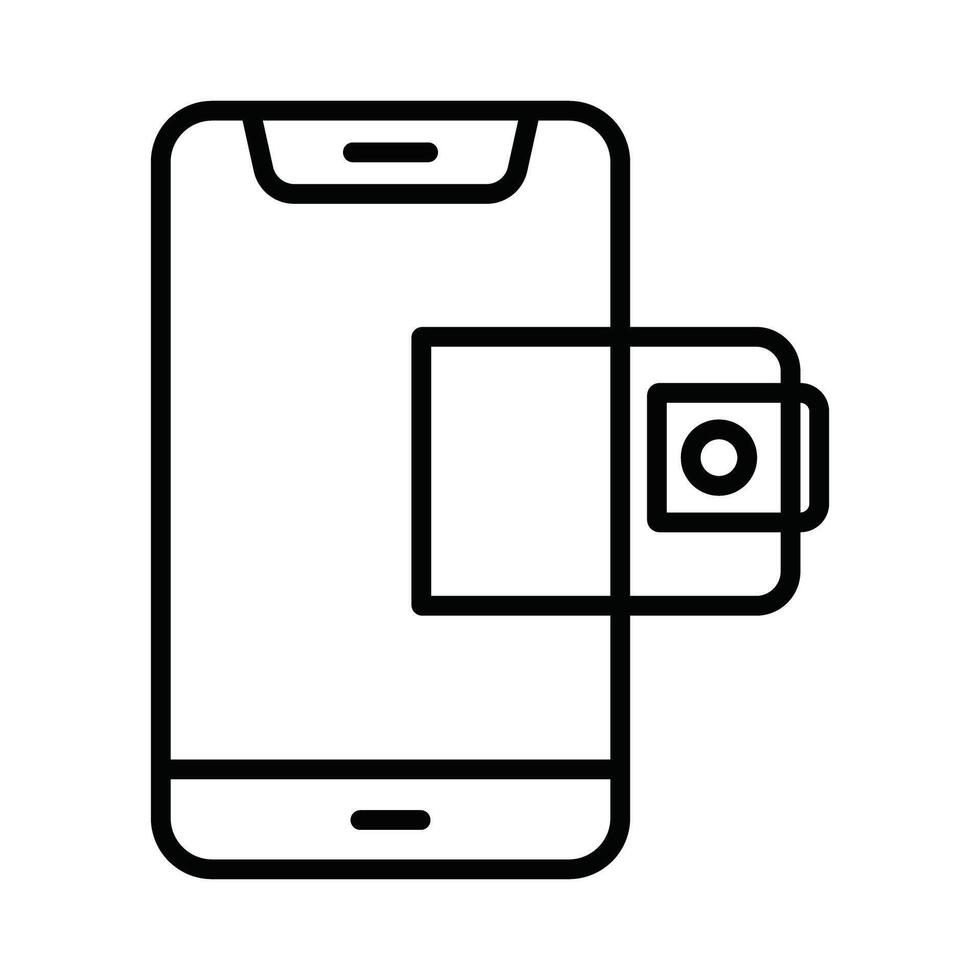 Outline icon representing a digital wallet and mobile payment. A smartphone with an attached card holder for cashless transactions. Free Vector