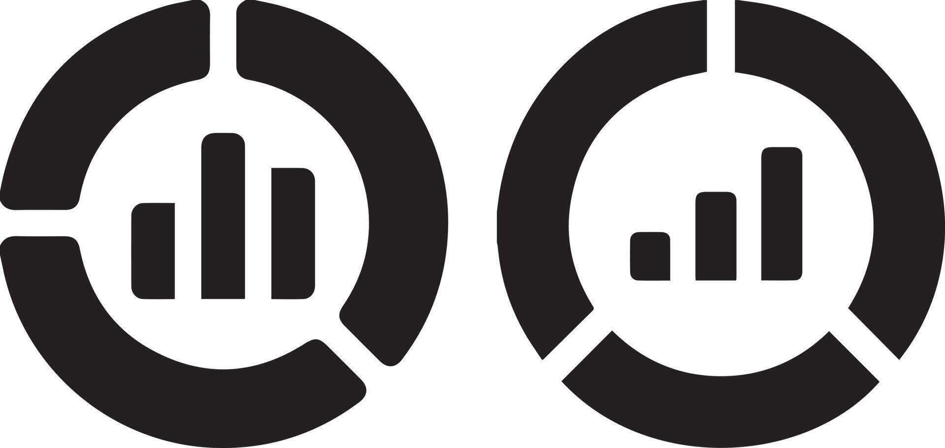 Two black and white icons of a bar graph and a bar chart Free Vector