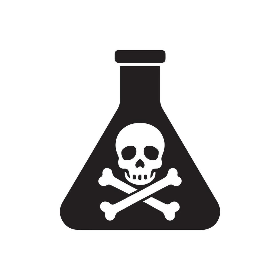 graphic of a poison warning symbol, featuring a skull and crossbones inside a laboratory flask, signifying a toxic chemical hazard Pro Vector