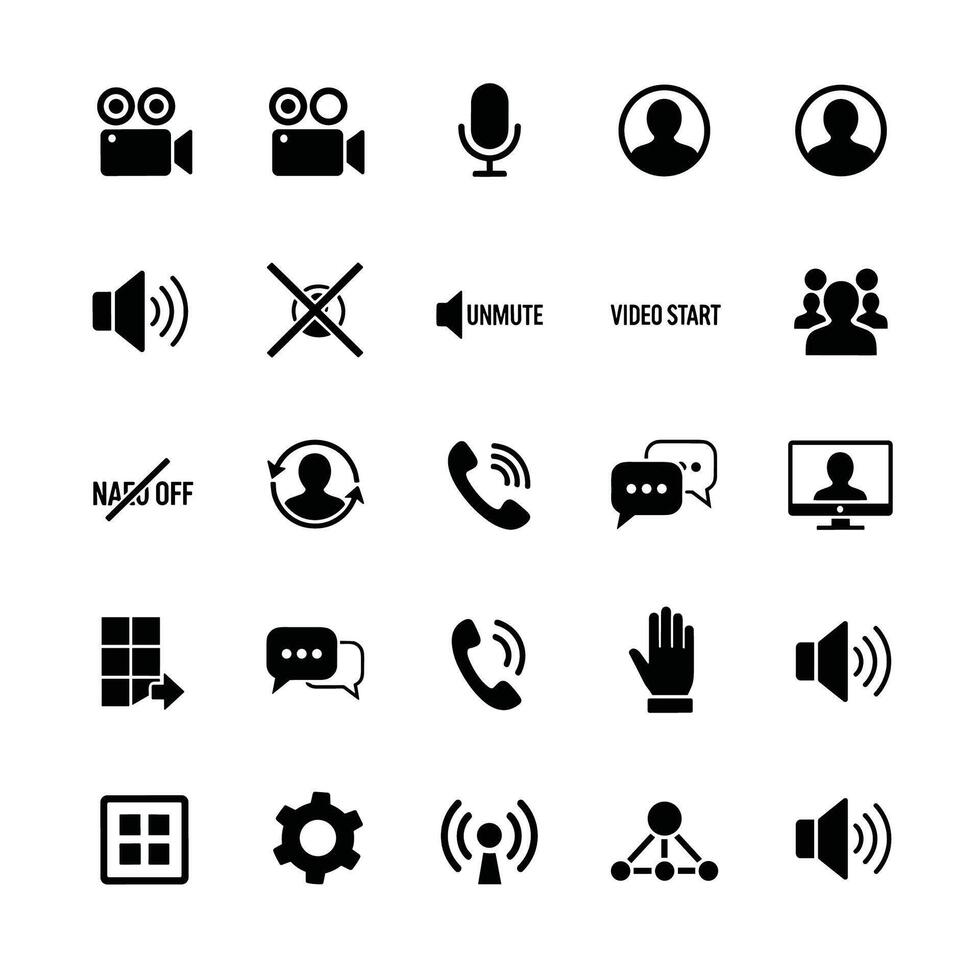 Collection of call icons including camera, microphone, mute, , and chat symbols for online communication interfaces Pro Vector