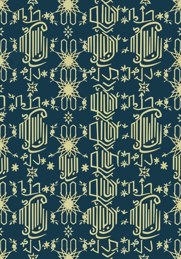 Intricate geometric pattern with stylized calligraphy and floral elements on a dark background Pro Vector