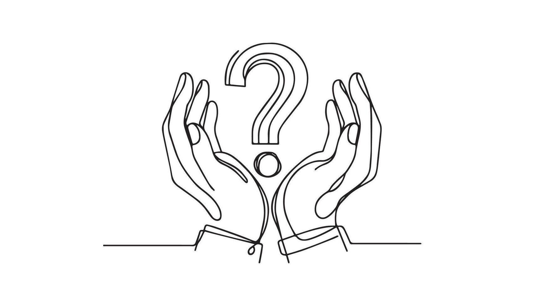 continuous line drawing of hands with question mark vector