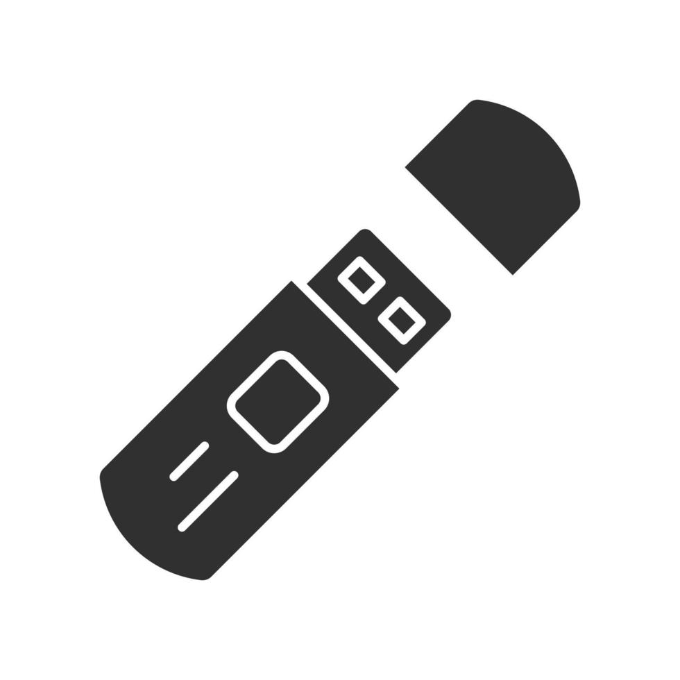 USB flash drive, external data storage glyph icon. Portable electronic device silhouette symbol. Negative space computer technology, PC accessory. Compact memory hardware vector isolated illustration Pro Vector