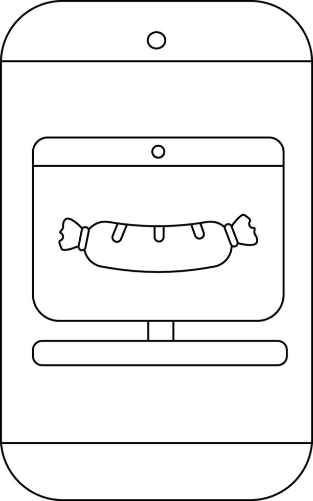 Outlined smartphone displays sausage on screen with speaker stand and frontfacing camera Pro Vector