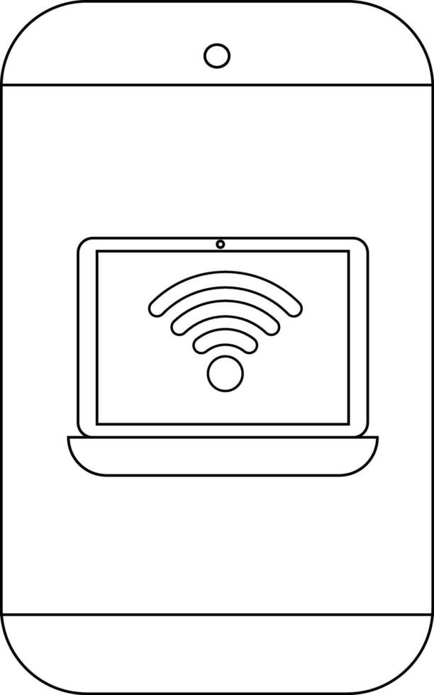 Outline of a smartphone displaying a laptop with a WiFi signal on its screen Pro Vector