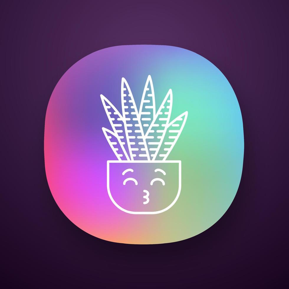 Zebra cactus app icon. Cactus with kissing face. Happy Haworthia cacti in pot. Small succulent plant with smiling eyes. UI UX user interface. Web or mobile application. Vector isolated illustration Pro Vector