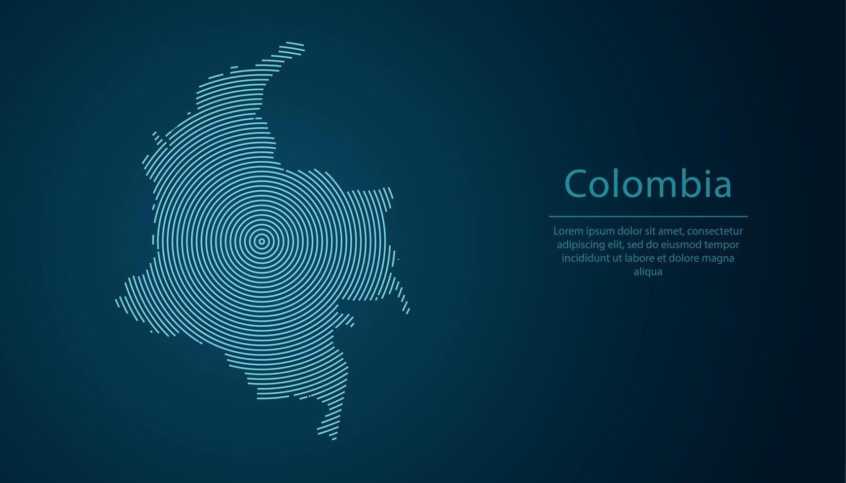 Colombia map contour with abstract circular line pattern Pro Vector
