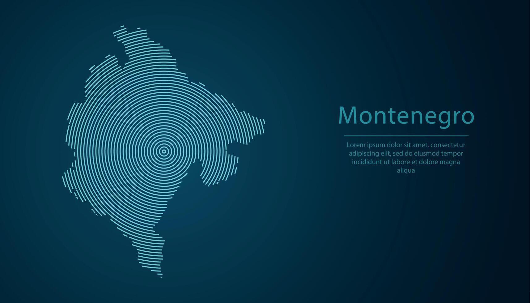 Montenegro map contour with abstract circular line pattern Pro Vector