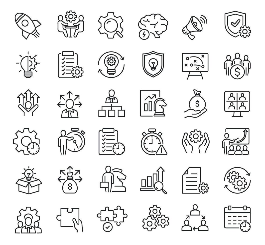 Set of collection line icons related Project Management. Perfect pixel on transparent background Pro Vector