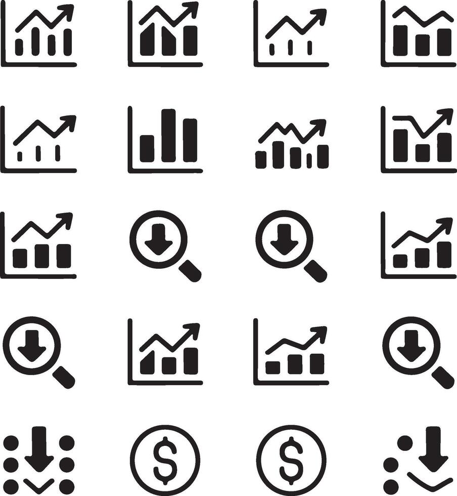 Collection of black and white icons representing financial charts and data analysis graph bar chart Pro Vector