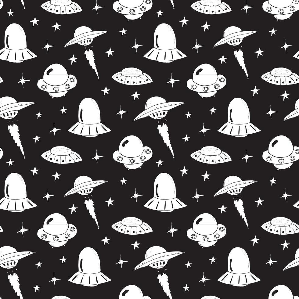 Black-and-white spaceship and saucer layout Pro Vector