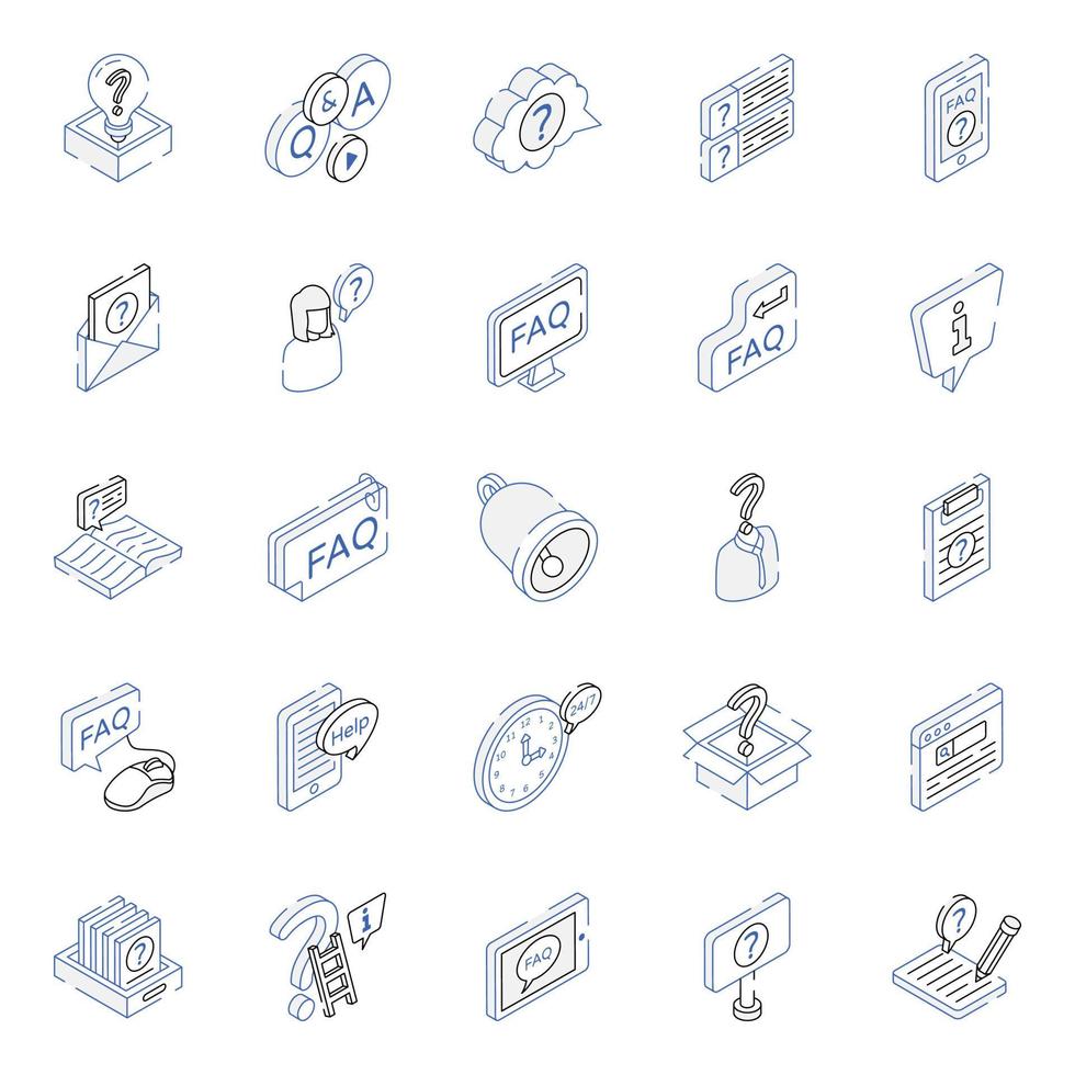 Trendy Set of Faqs and Queries Isometric Icons Pro Vector