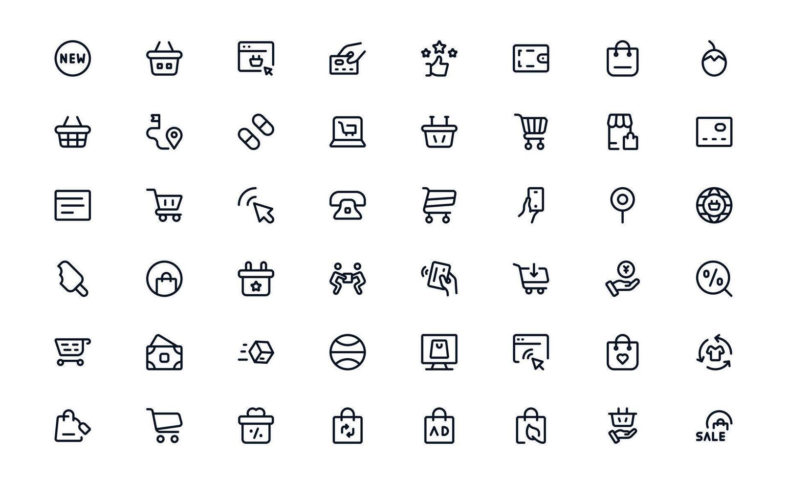 Modern Shopping Icon Bundle visualizing Retail Apps, Online Stores, and Customer Interfaces Pro Vector