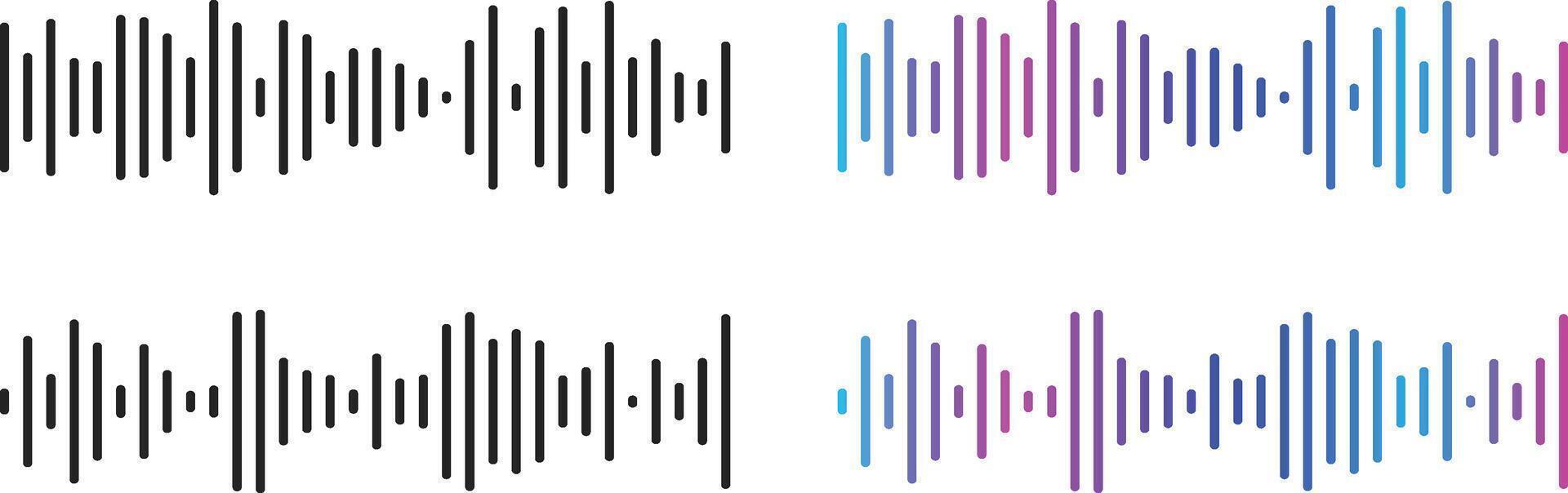 Sound Wave Icon Set. Audio Wave and Music Frequency Symbols for Audio Editing, Equalizer Panel Interface and Music Broadcast Waveform Symbols Pro Vector