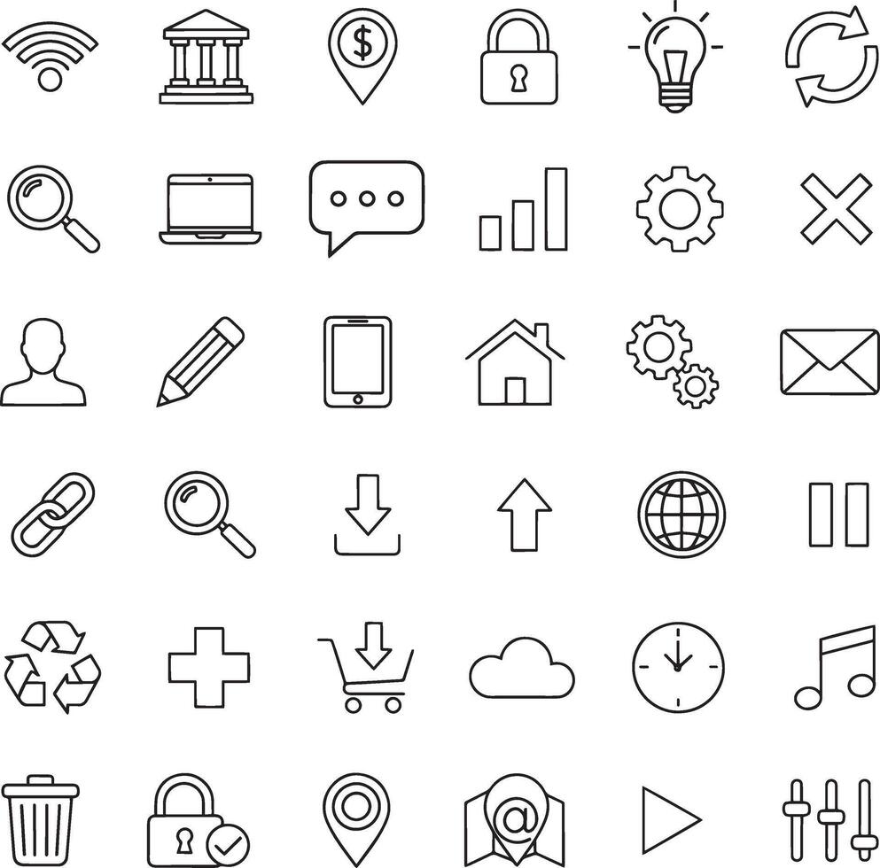 Outline Web Icons Set for Business Technology and Interface Collection vector