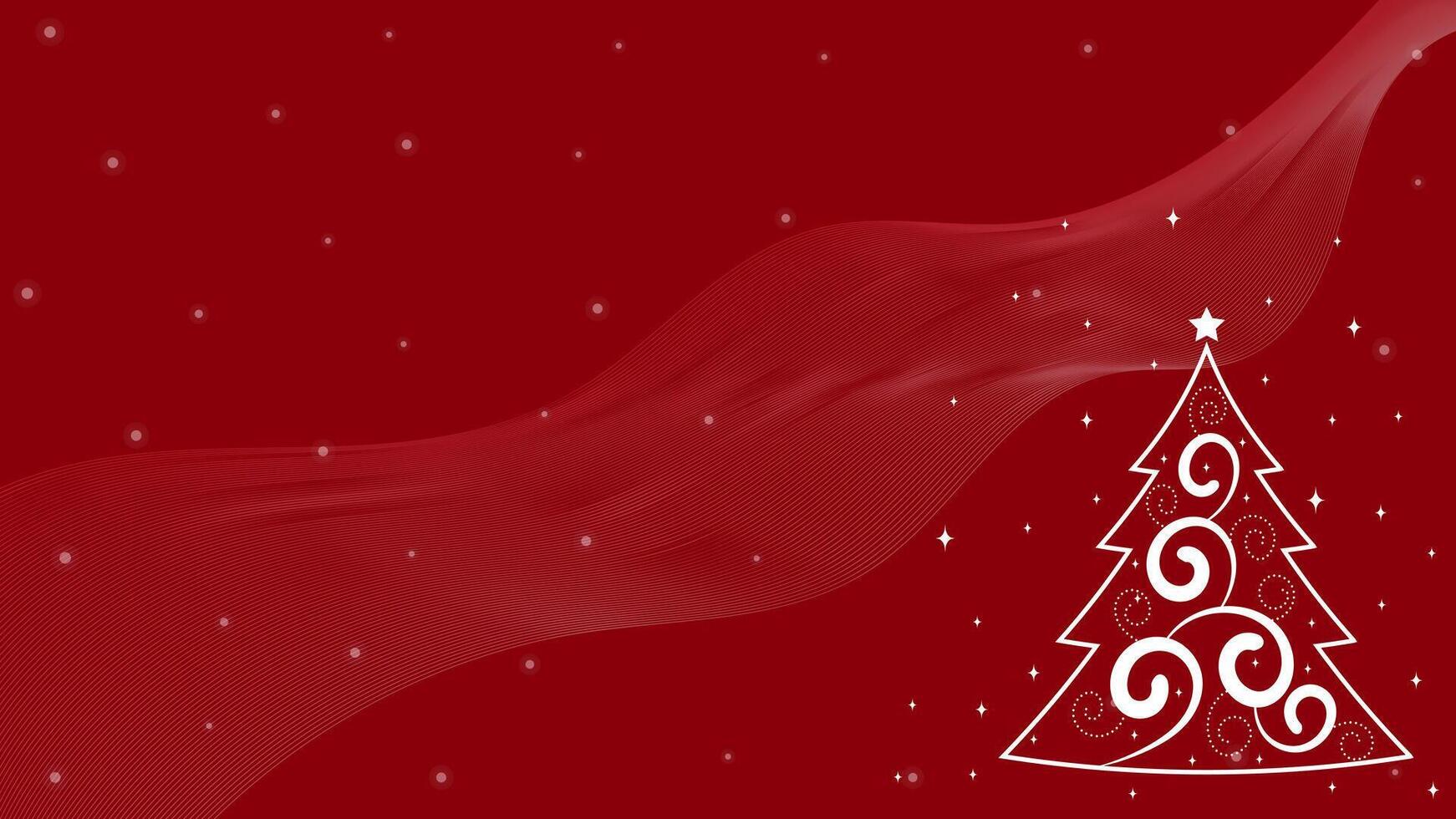 Red Background With Christmas Tree Ornaments And Sparkling Snowflake Decorations Pro Vector