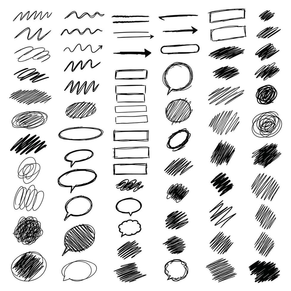 Hand Drawn Doodle Elements Set Arrows, Boxes, Speech Bubbles, and Scribbles for Design and Highlighting, Isolated on White Background for Creative Projects Pro Vector