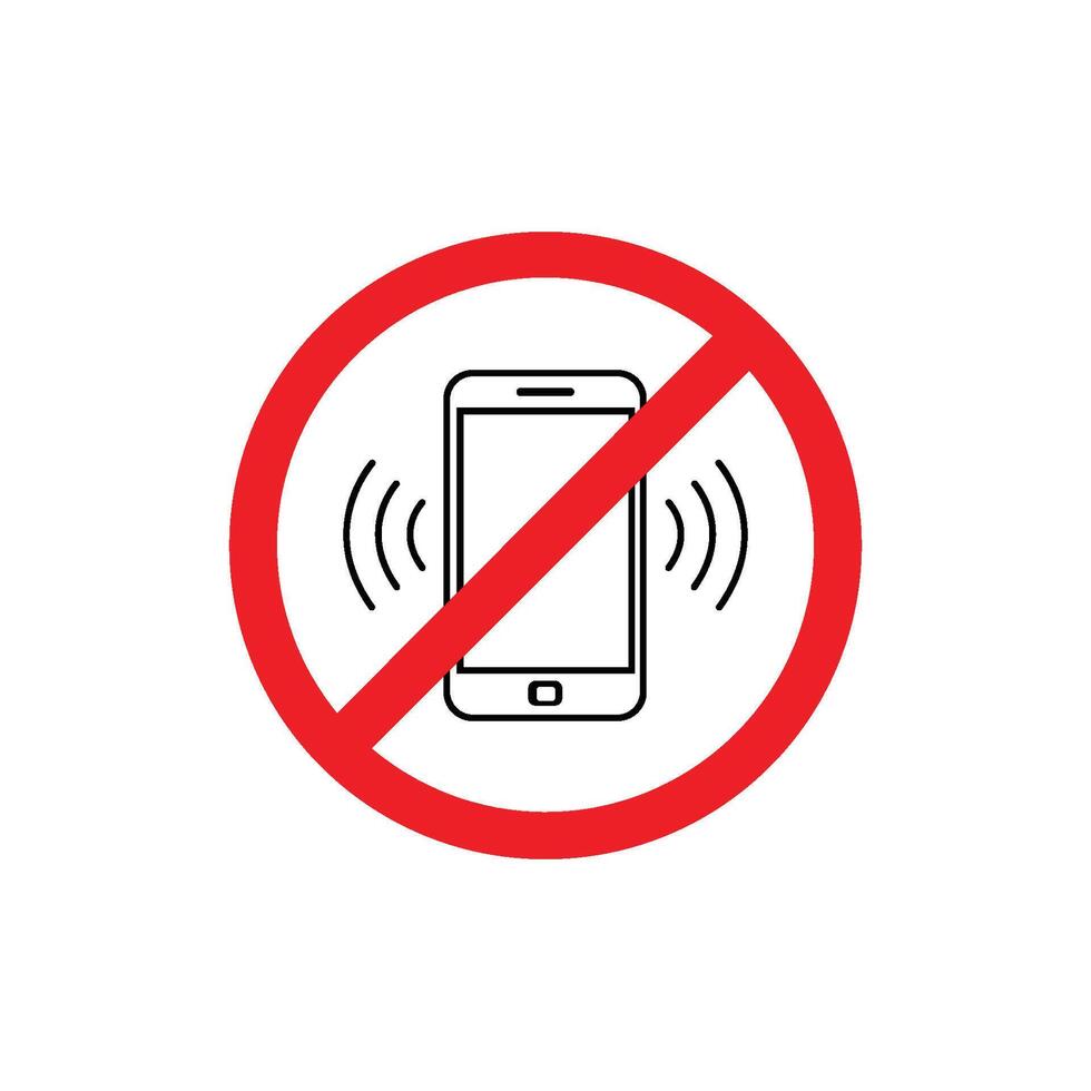 A simple no mobile phone sign with a red prohibition circle and crossed smartphone symbol. Ideal for warning, restriction, and safety use. Pro Vector