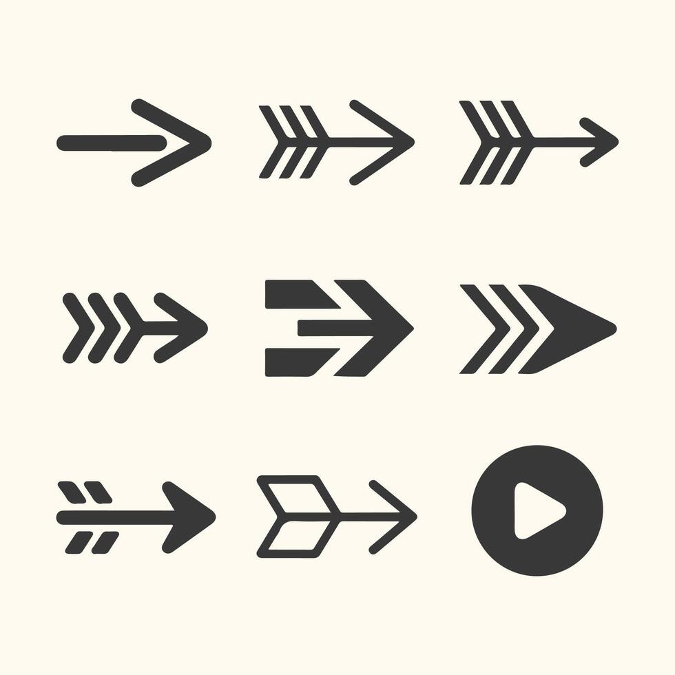 Assortment of Arrow Icons and a Play Button Symbol direction pointer Pro Vector