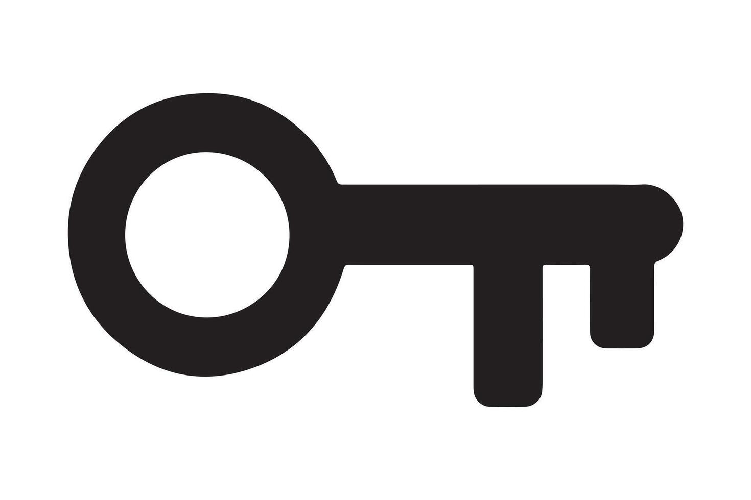 Flat black icon representing a simple skeleton key, isolated on white background vector
