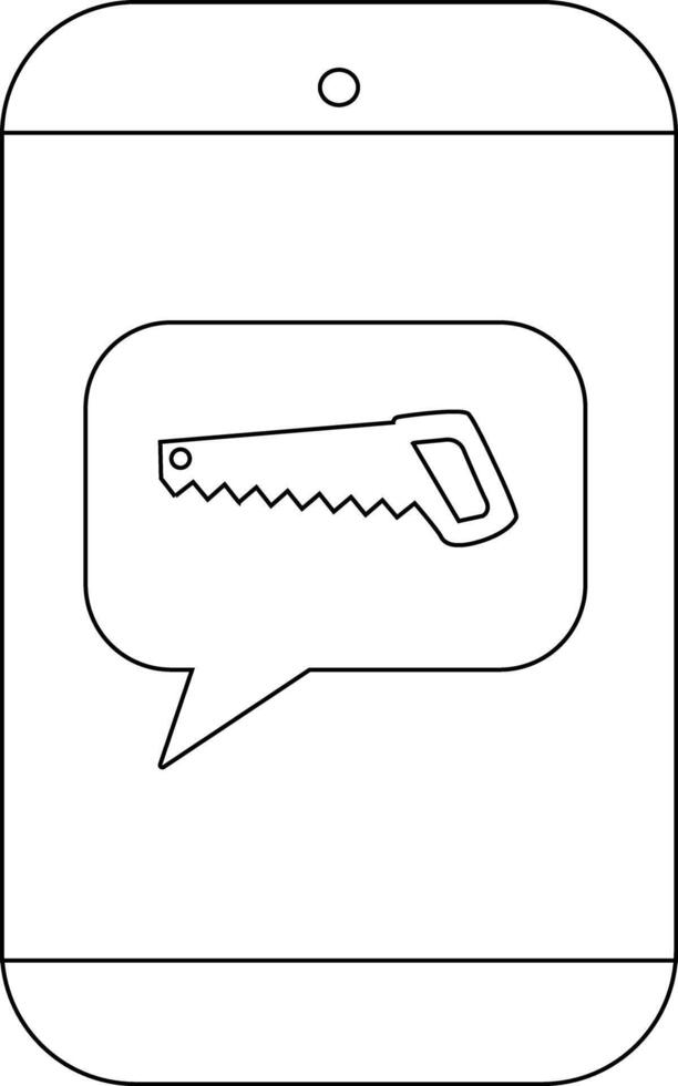 Black and white image showing a smartphone with a saw in a speech bubble Pro Vector
