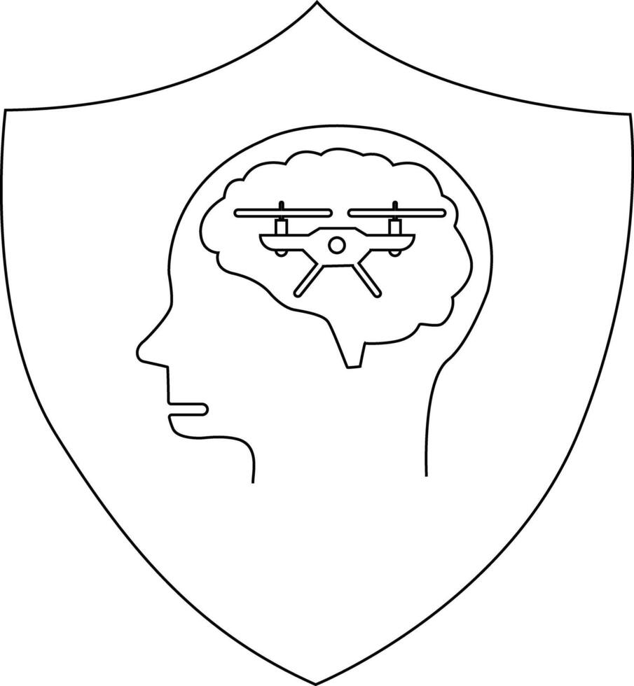 A braindrone is inside a head in front of a shield Pro Vector