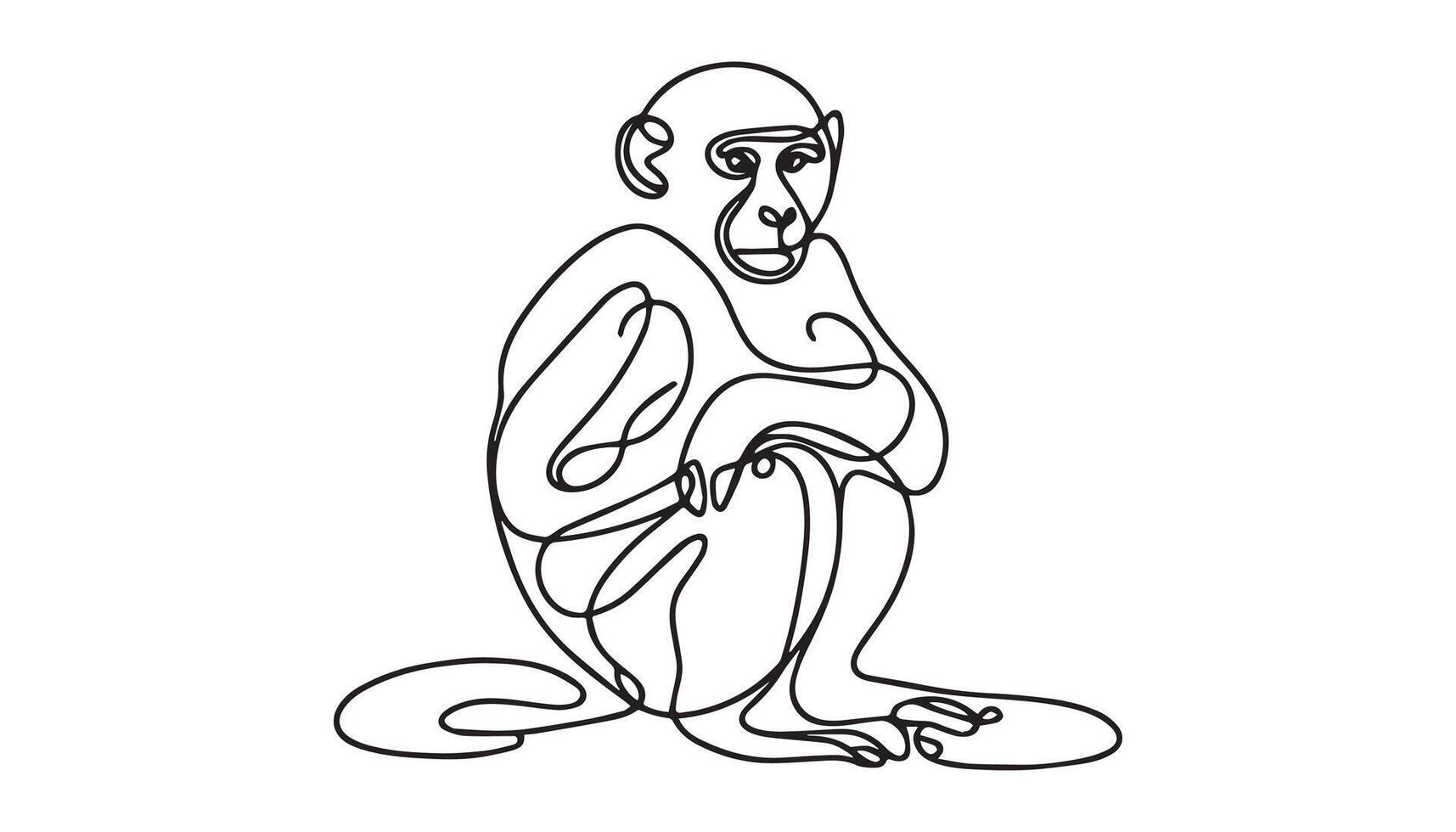 a continuous line drawing of a monkey sitting on the ground Free Vector
