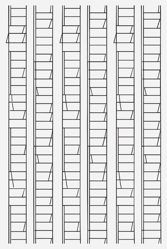 Architectural blueprint sketch of a multi story building facade featuring numerous open and closed louvered windows Pro Vector