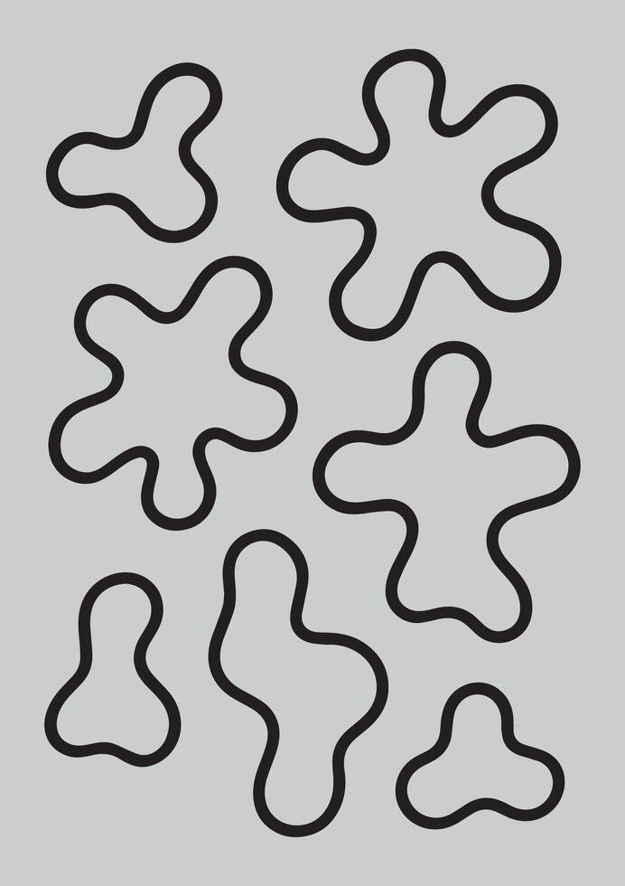 Abstract organic shapes with bold black outlines on a subtle gray background creating a playful pattern Pro Vector