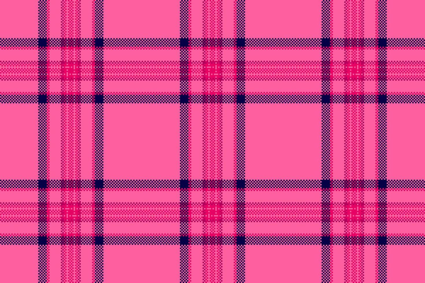 Pixelated pink plaid seamless pattern. Trendy textile design with checks and stripes. Ideal for backgrounds, crafts, apparel, and digital artwork, adding a playful touch. Pro Vector