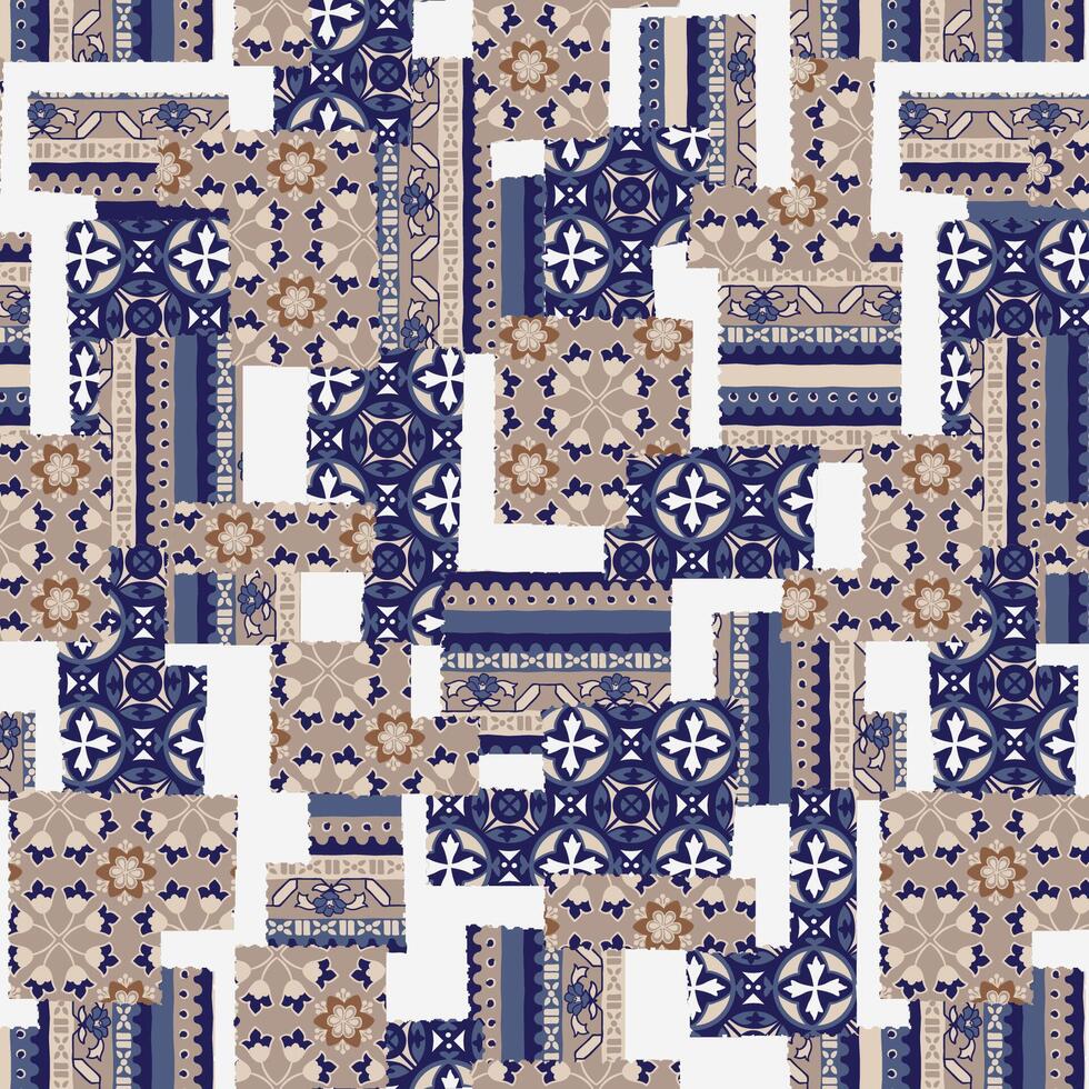 Patchwork pattern with geometric ornaments design. Pro Vector