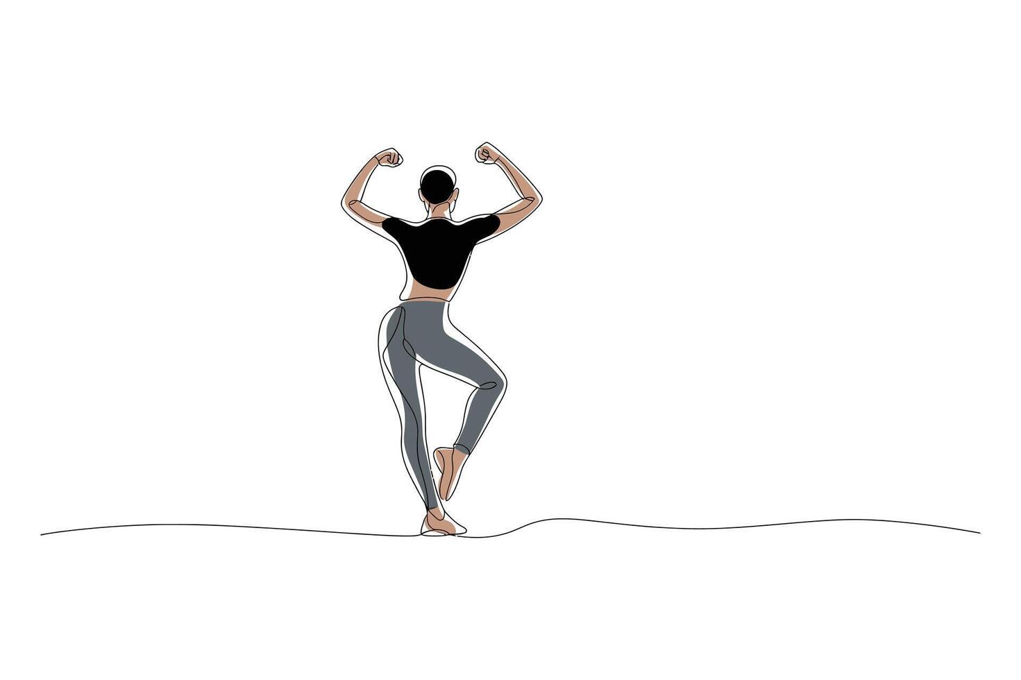 Graceful ballerina performing a dynamic pose with arms raised in a studio with abstract floor lines Pro Vector