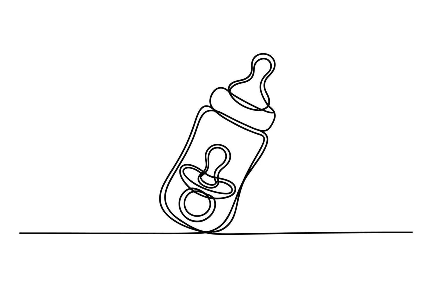 Minimalist continuous line drawing of a baby bottle with a pacifier inside on a white background Pro Vector