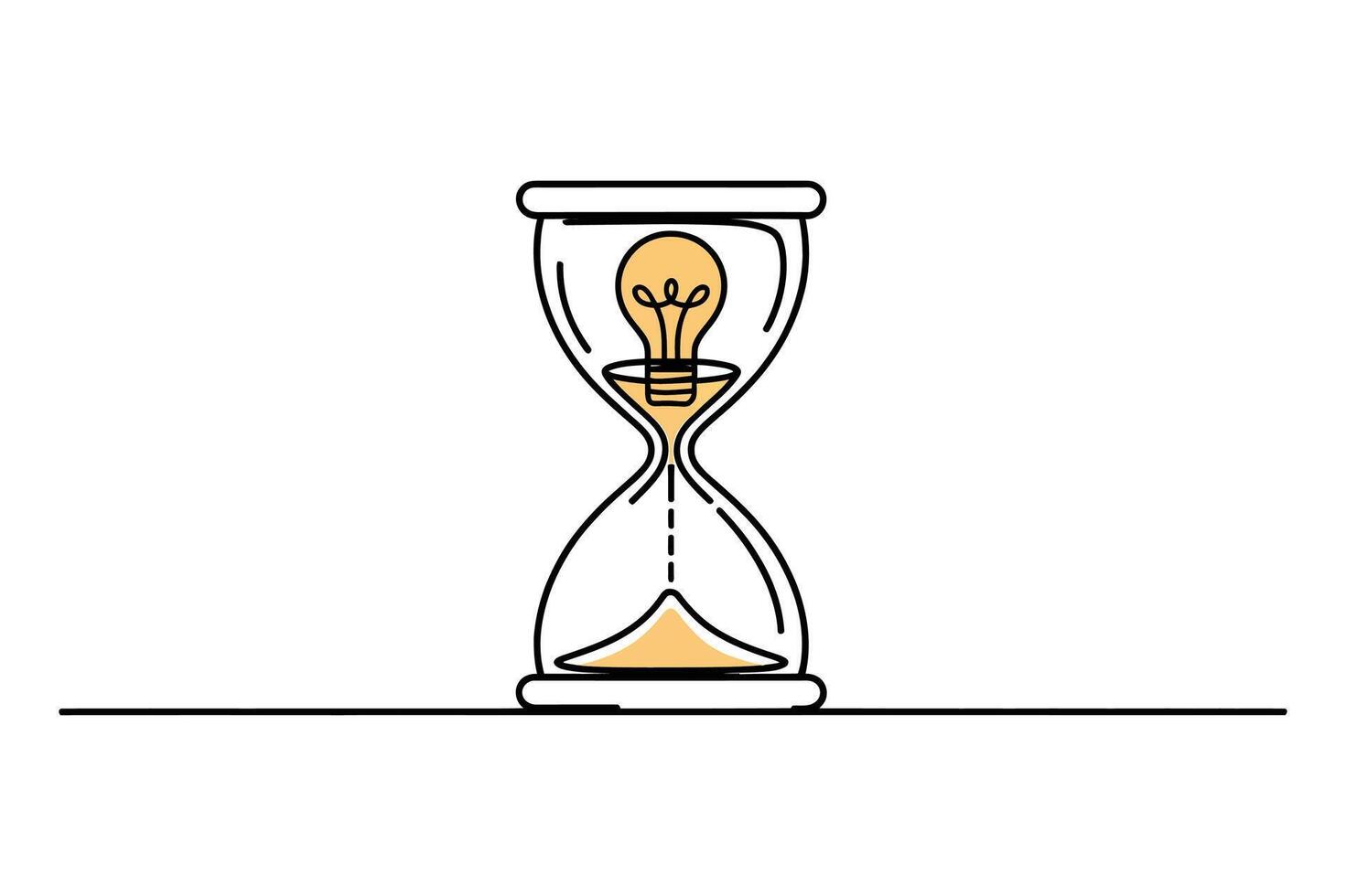 Hourglass with a glowing lightbulb inside symbolizing the passage of time and the generation of new ideas Pro Vector