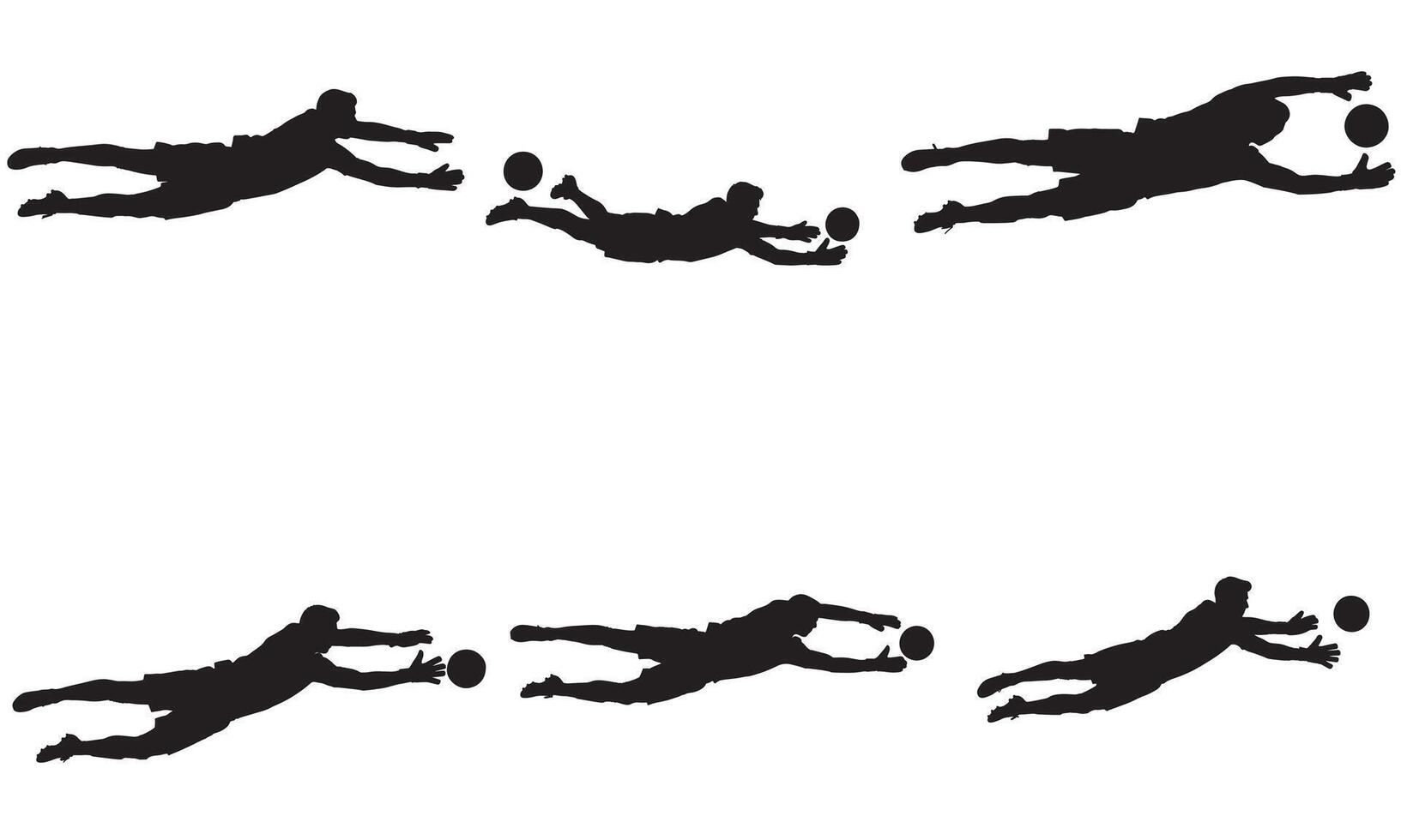 Sequence of a person diving and catching a ball in a dynamic silhouette illustration vector