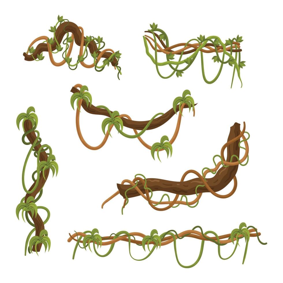 Tangled Set Of Lianas, Intertwining And Climbing Through The Forest, Creating A Natural Web Of Vines Illustration Pro Vector