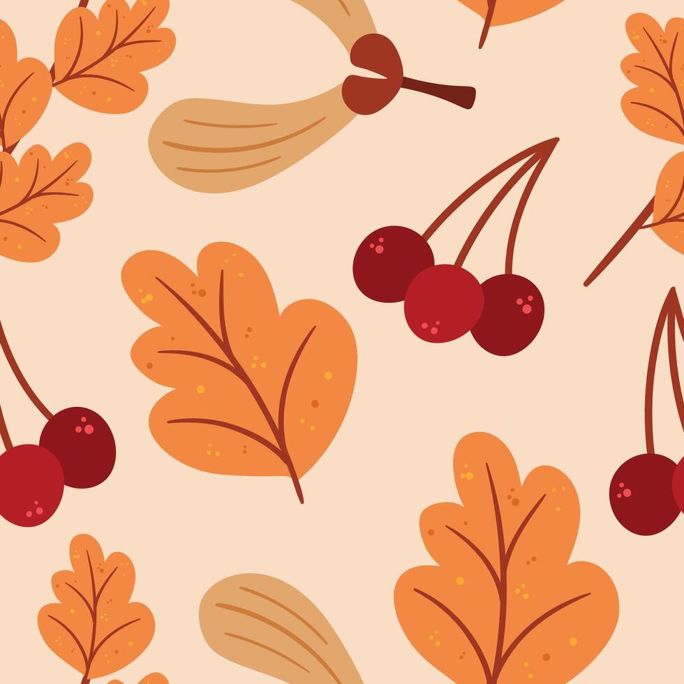 Seamless Pattern Adorned With Vibrant Autumn Leaves And Berries, Creating A Warm And Inviting Seasonal Design Pro Vector