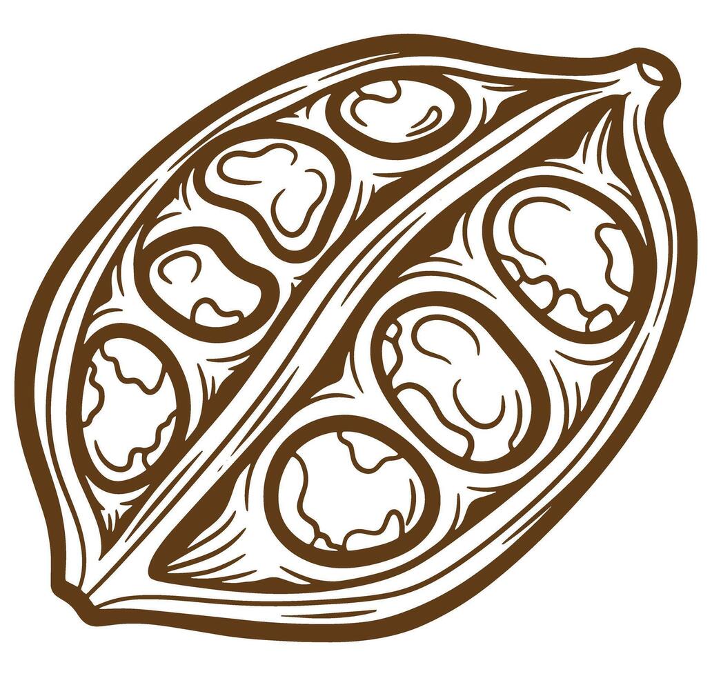 Detailed cross section illustration of a pecan nut with outlined structure and elements Pro Vector