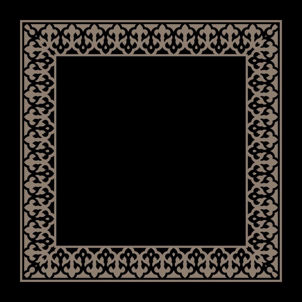 Square frame with an intricate, repeating ornamental pattern in a taupe hue against a black background. The design features stylized floral and swirling motifs, evoking a classic, elegant feel Pro Vector