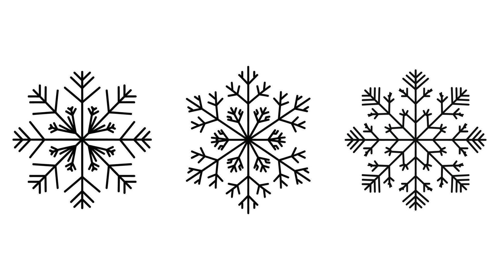 Three intricate black and white snowflake designs arranged in a row on a white background Pro Vector