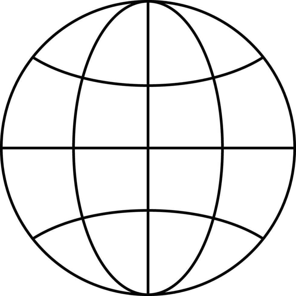 A minimalist black and white line drawing of a globe with a grid of meridians and parallels. Pro Vector