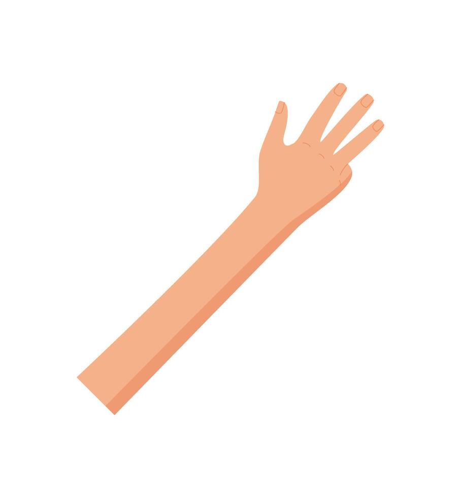 Flat hand gesture with four fingers raised. Bare palm and arm showing the number 4 for counting purposes. Clear sign and iconic pose, isolated versatile for math or educational uses. Pro Vector