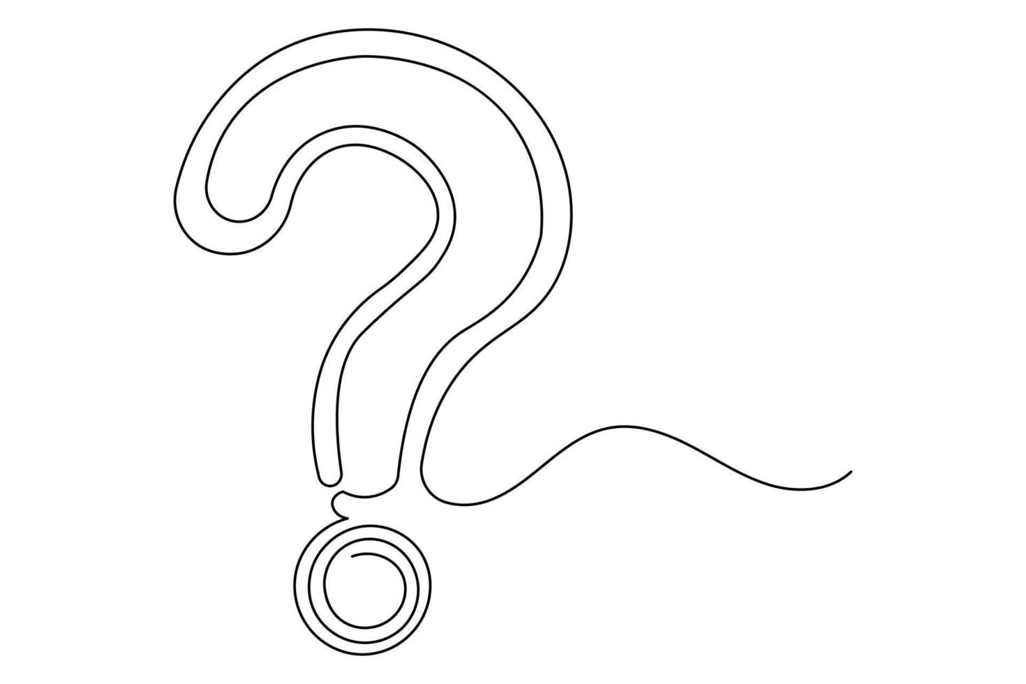 Question mark continuous single line illustration in modern minimal outline art Pro Vector