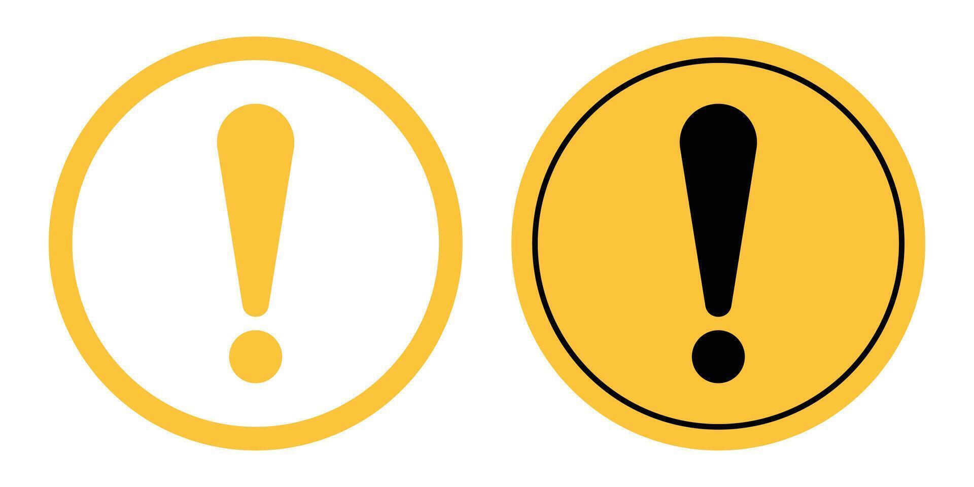 Warning and attention symbol set illustration with yellow and black exclamation marks in circles, representing important information, alerts, cautionary messages for digital media Pro Vector