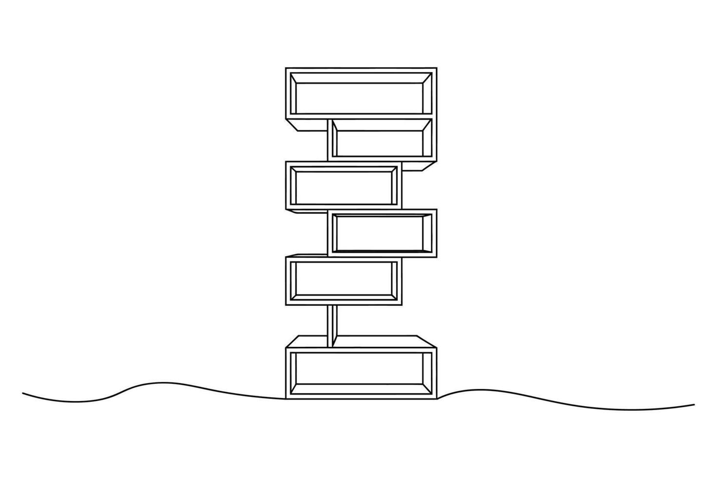 Abstract architectural sketch of a tall narrow building with stacked rectangular levels on a wavy ground line Pro Vector