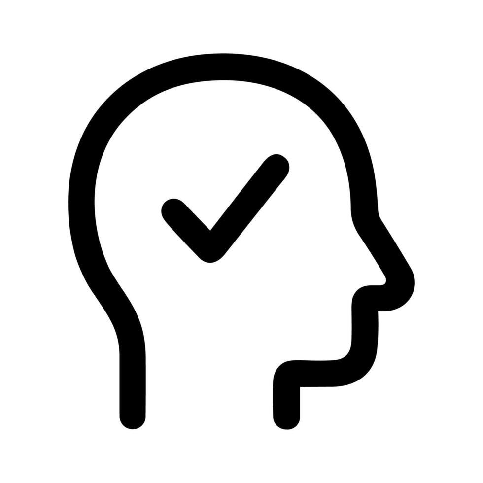 Simple Line Style Head Profile with Check Mark Shape Icon Pro Vector