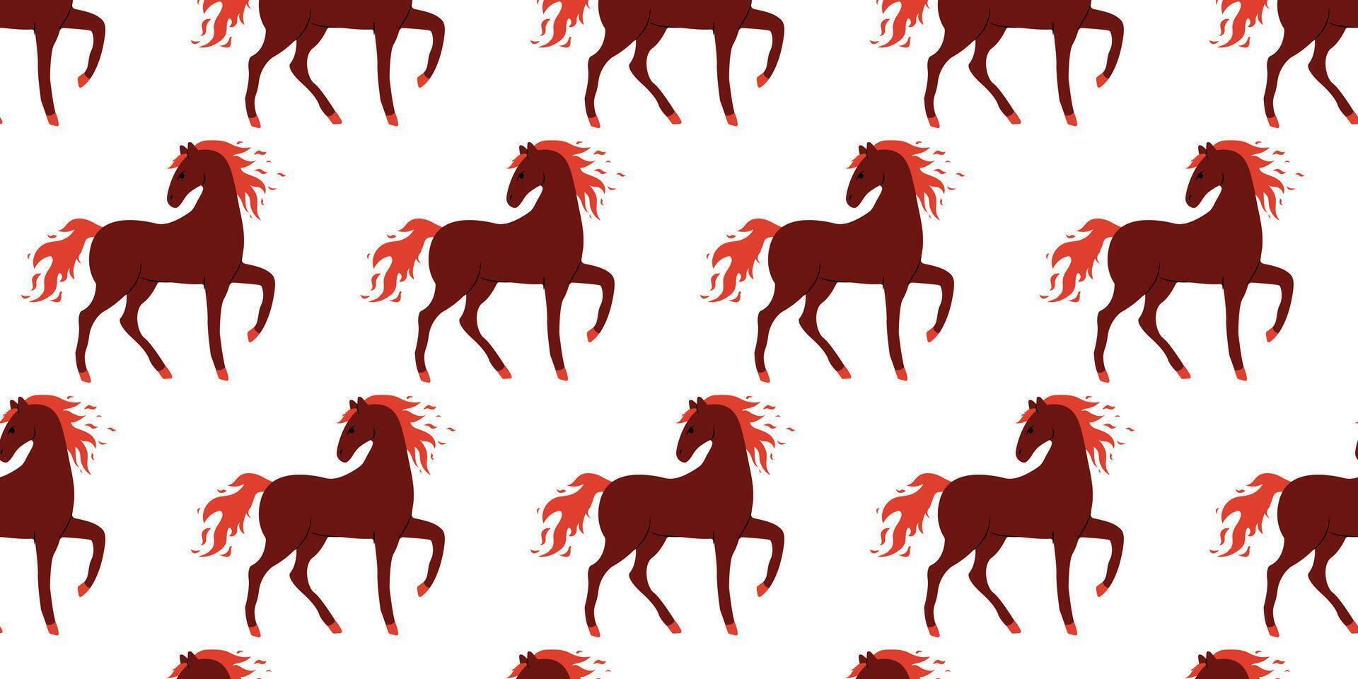 Pattern of red horses with flowing manes against a white background in repeating design Pro Vector