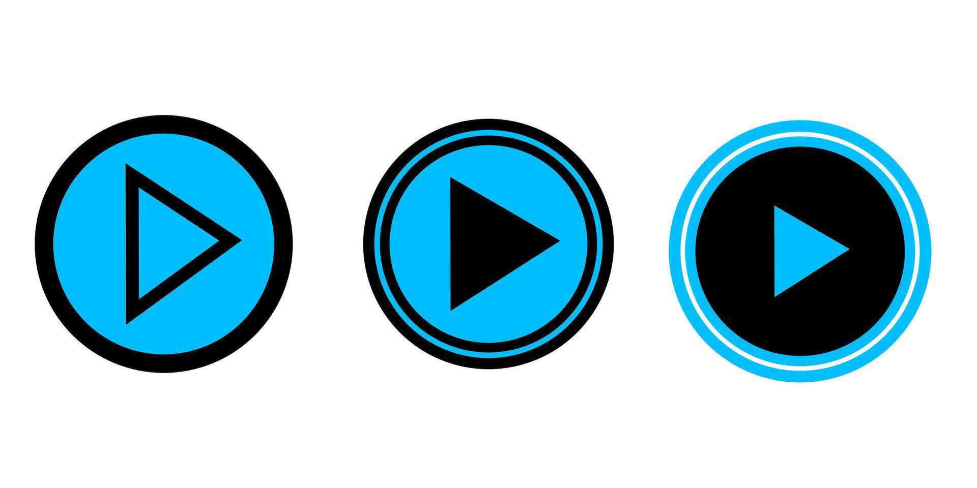 A collection of blue play and pause icons on a white background. Play and pause icons for audio, music, web. Pro Vector