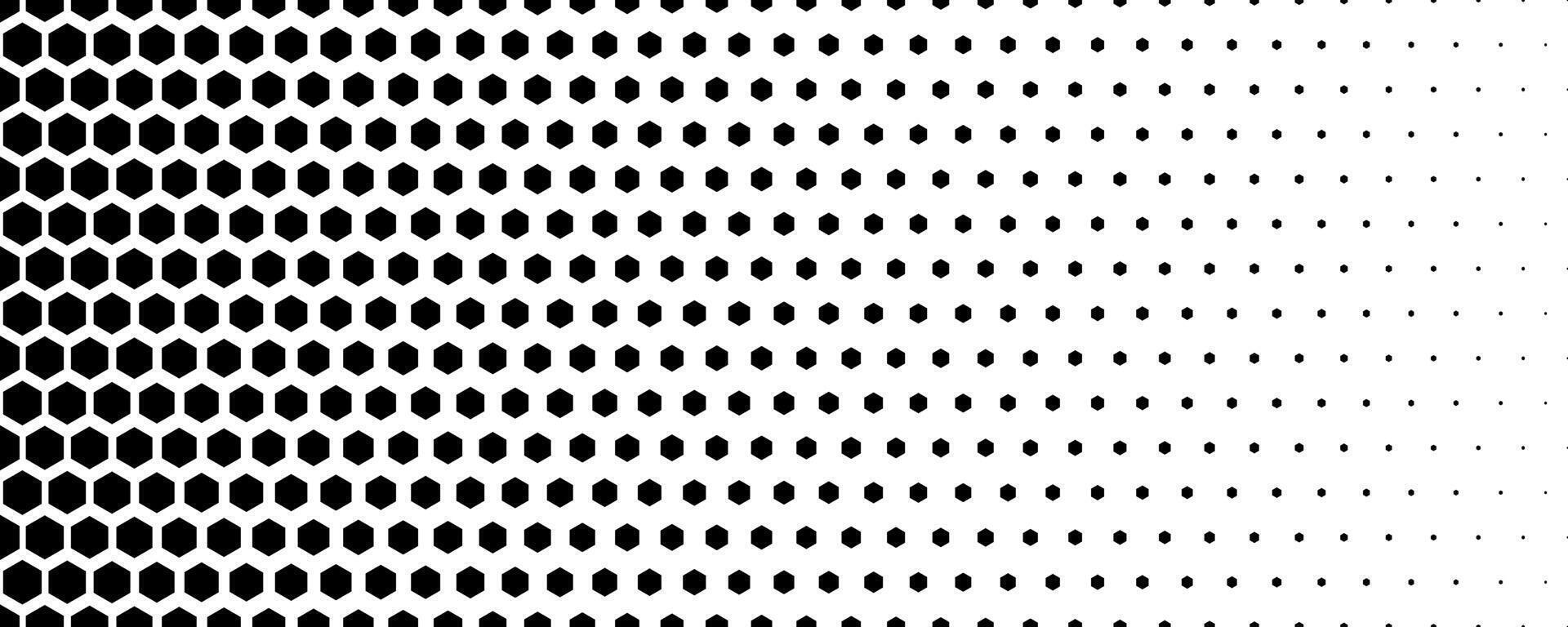 Fading hexagon gradient texture. Vanishing honeycomb pattern background. Geometric hexagonal halftone tech overlay backdrop. Black grunge halfton wallpaper. Retro dot texure wallpaper Pro Vector