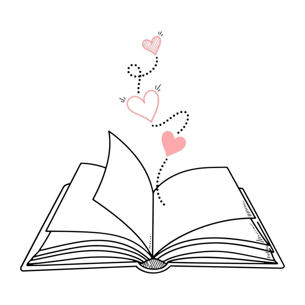 Open Book with Floating Hearts Representing Love and Imagination Pro Vector